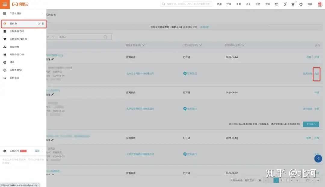 2、进入后台:在阿里云官网,单击控制台→云市场,单击已购买的服务,找到订单,单击免登即可进入网站控制台首页。
